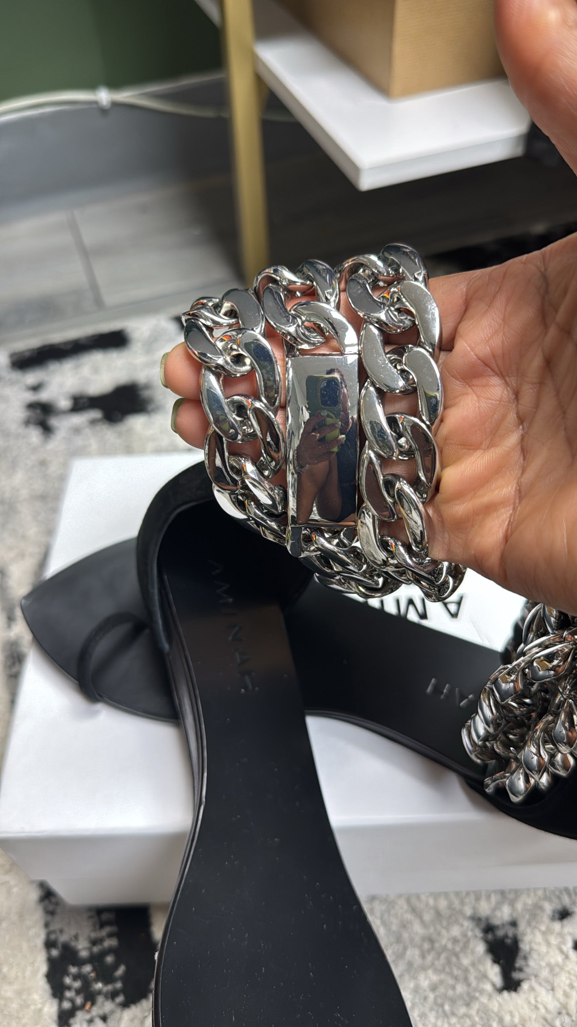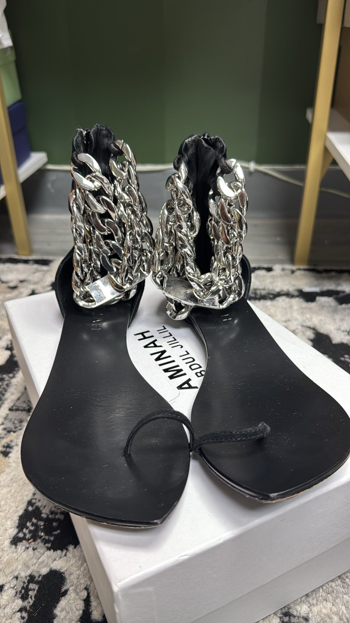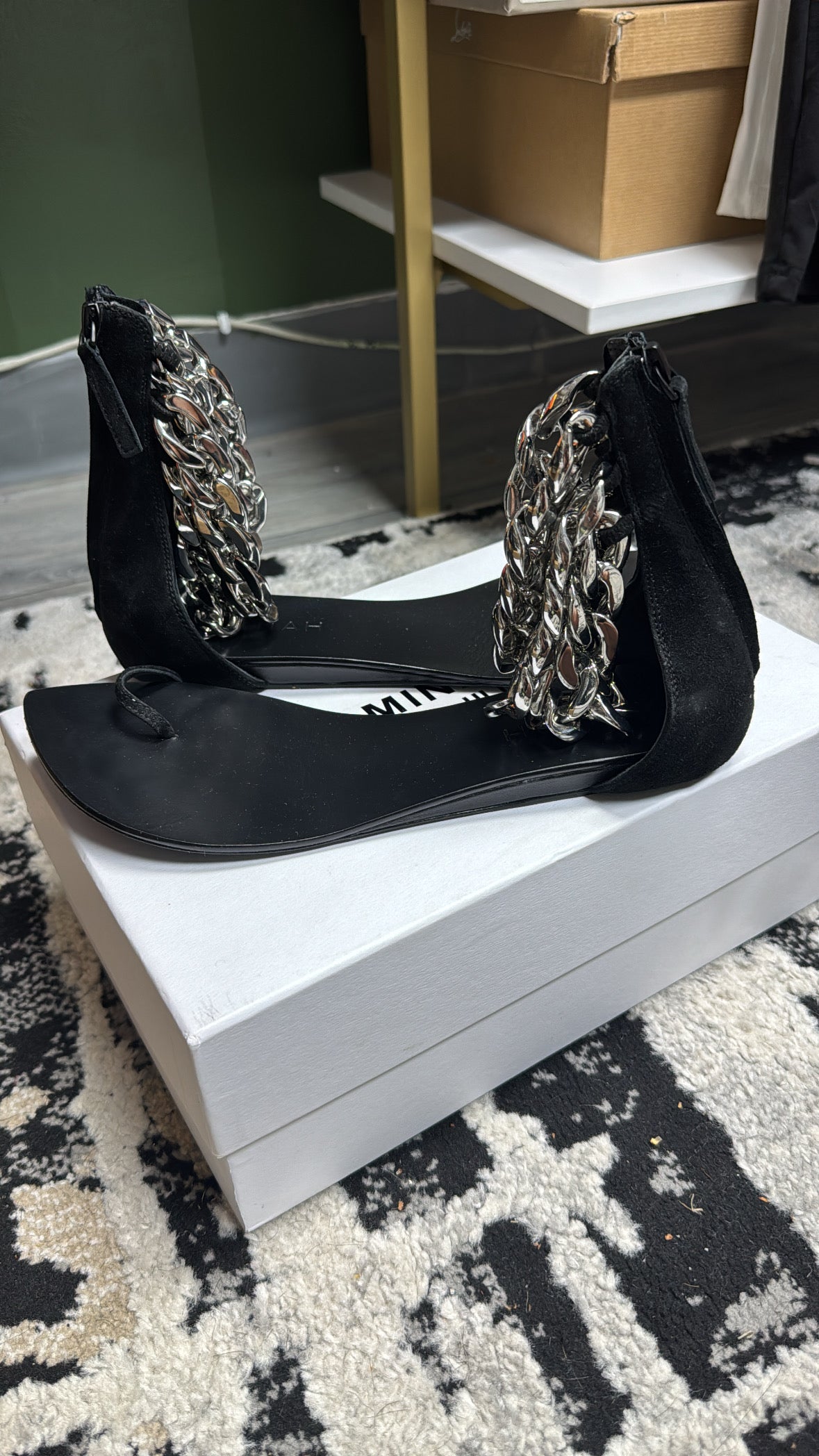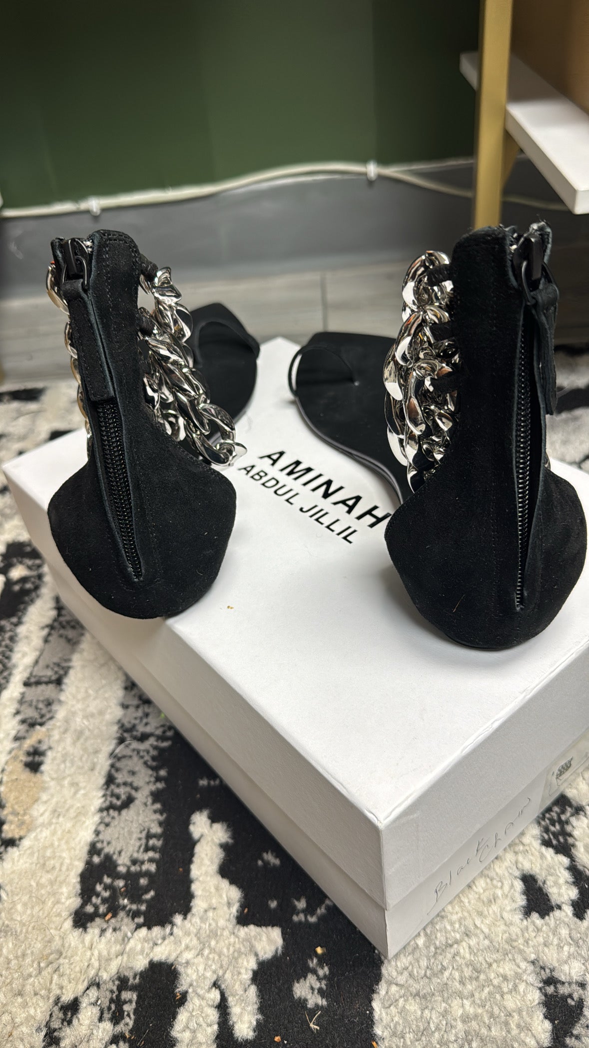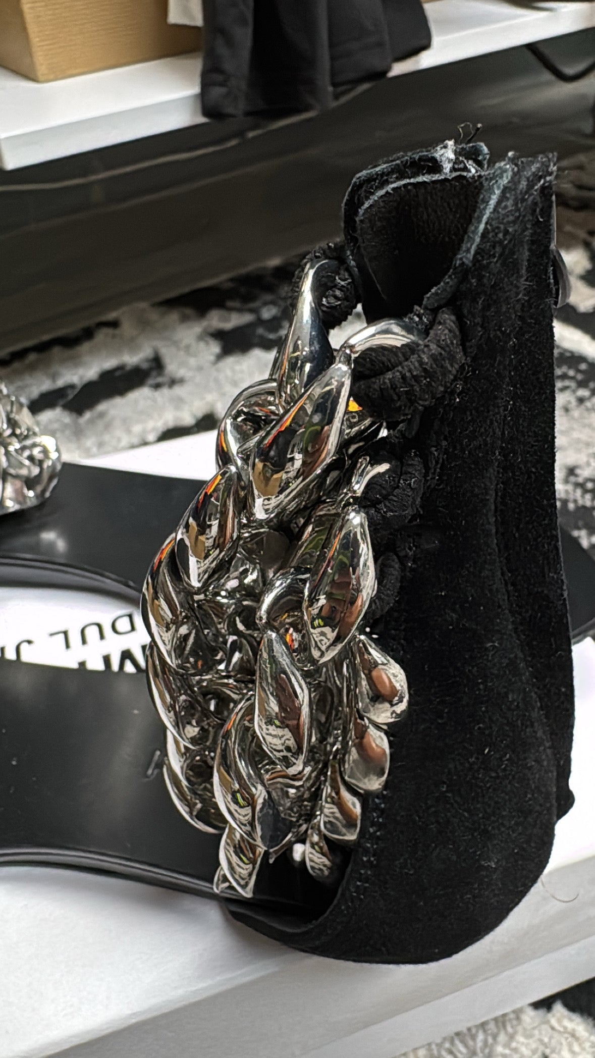 Black Suede/ Silver Chain Sandal