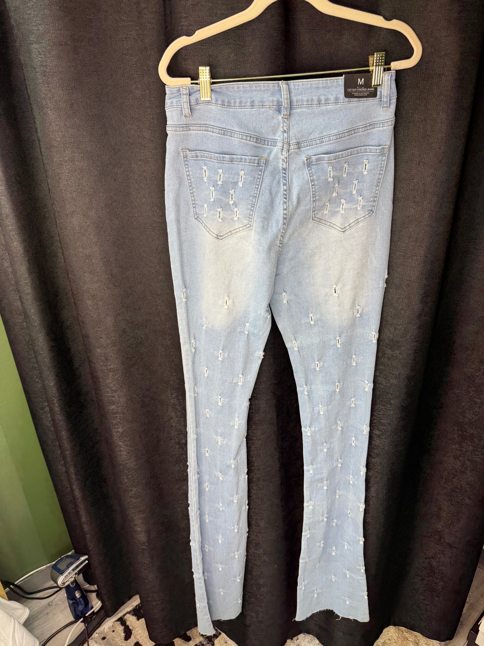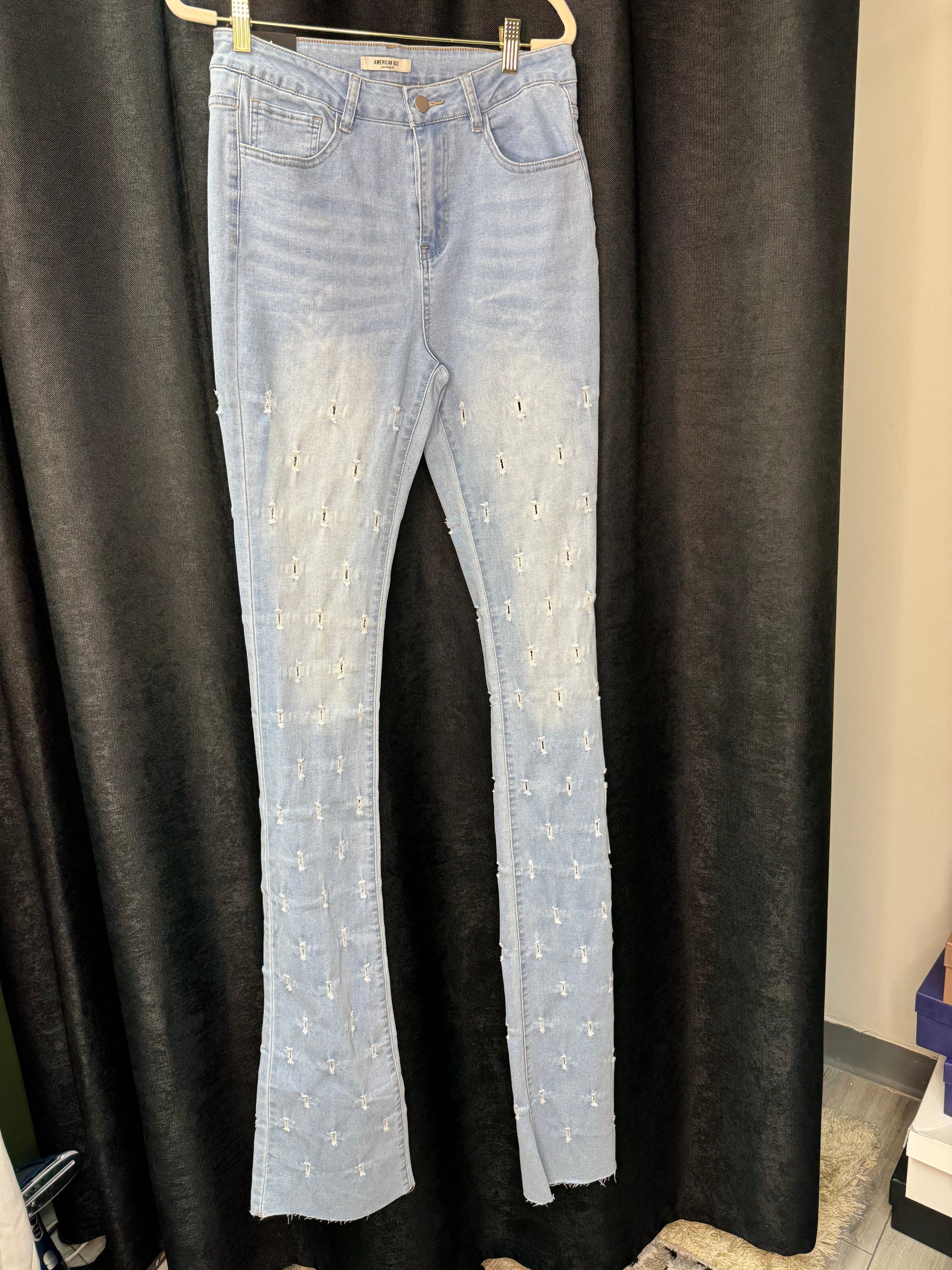 Light blue stacked denim jeans. Brand new, never been worn